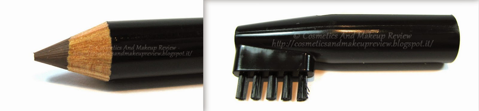 Il pennellino è duretto e composto da setole sintetiche. Poiché non sono avvezza all'utilizzo di matite per le sopracciglia, non saprei dirvi se ne esistano di meglio in commercio, ma posso dirvi che, non essendo fine, questo pennellino non è in grado di garantire una buona precisione nella codina finale, a meno che una non sia particolarmente esperta nell'applicazione.